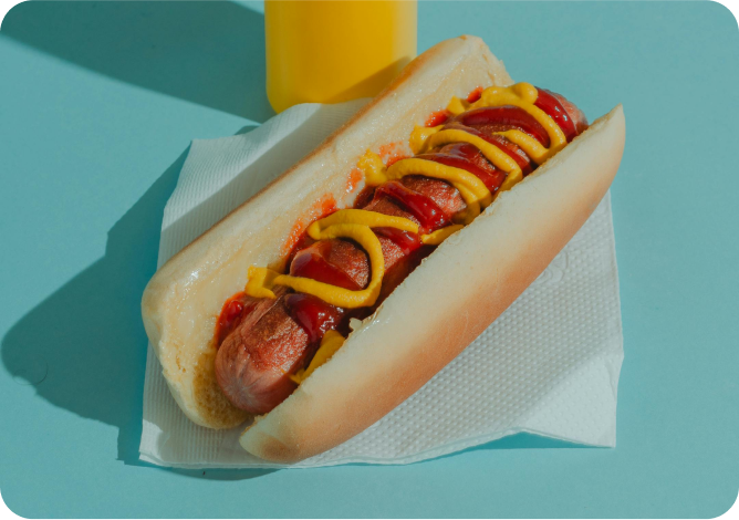 Temos cachorros-quentes e sandes de panado quentinhos, deliciosos e prontos em minutos. Simples,